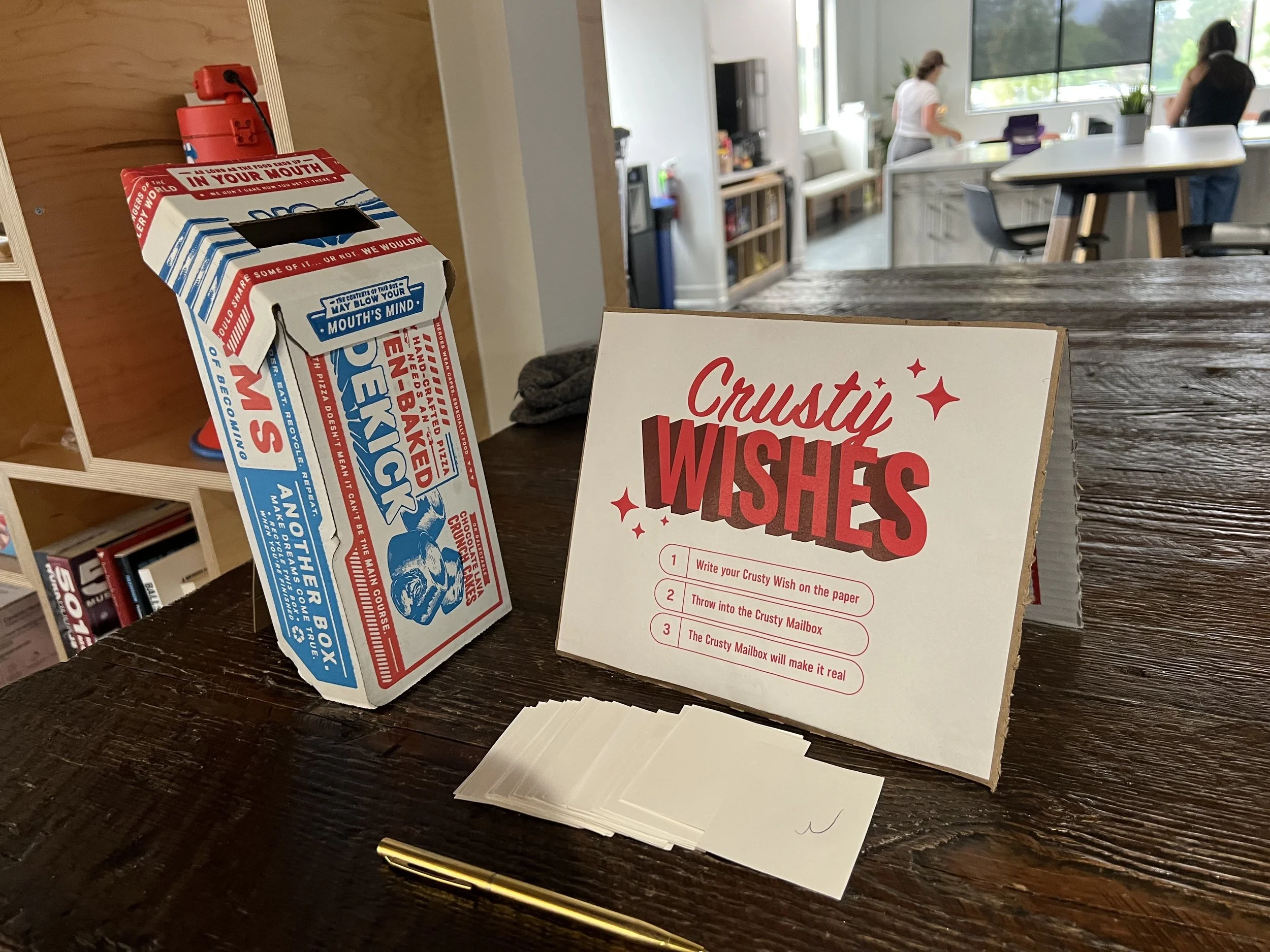 As a proactive project during my internship, I created Crusty Wishes, a magical box that granted people's desires with an ironic and metaphorical twist. Despite the bizarre outcomes, the service was surprisingly popular at the agency. At the end of my internship, I revealed I was the creator behind the mischief.