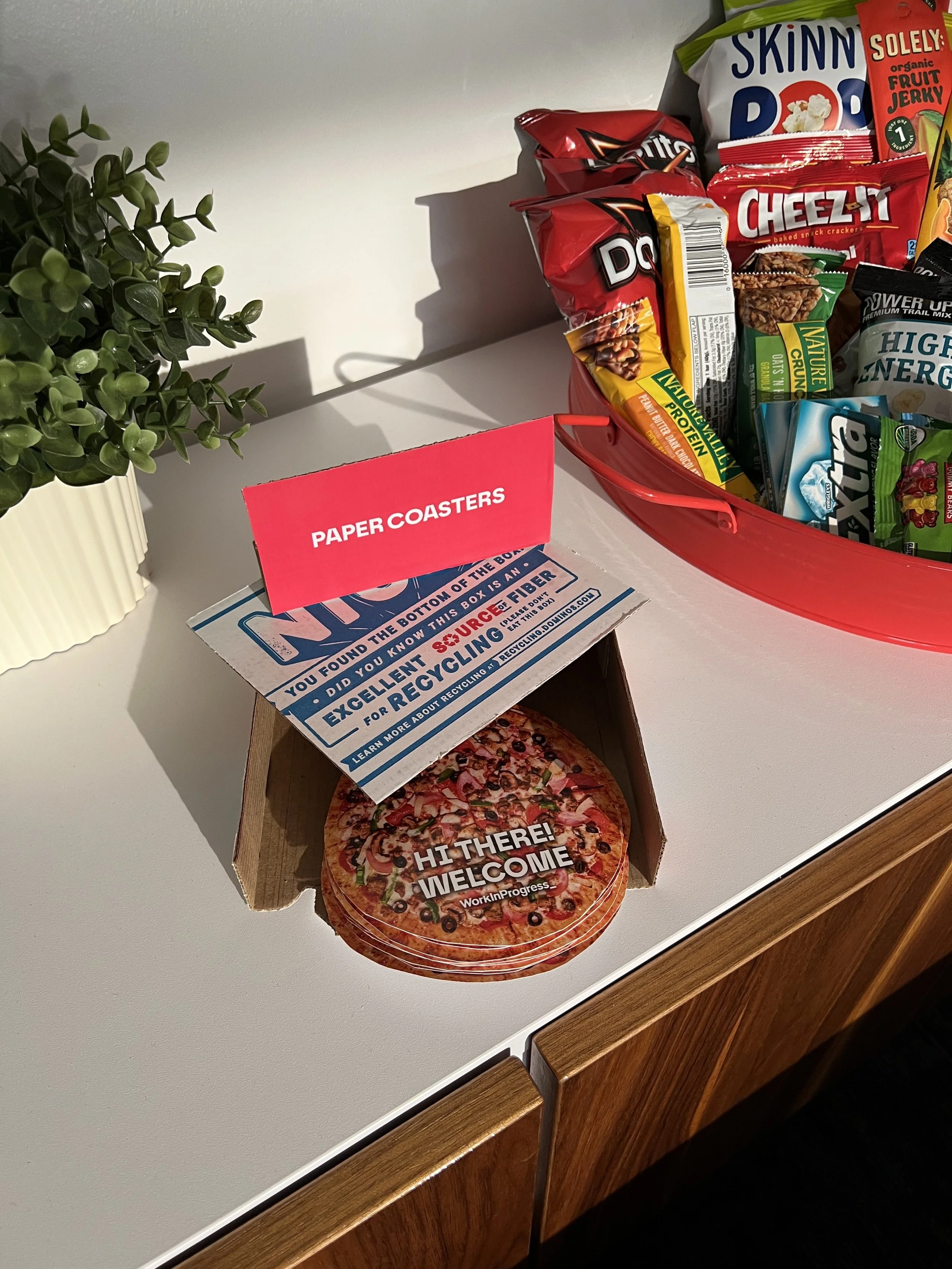 During an important visit from Domino’s clients, I took the initiative to design, print, and hand-cut custom paper coasters—adding a thoughtful touch that made them feel welcomed and ensuring every detail was polished, professional, and tailored for their first experience at the agency.